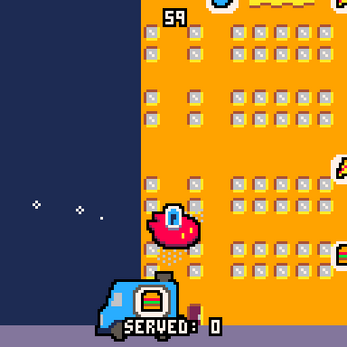 You have 60 seconds to deliver food to as many hungry customers as possible! Fly over a food truck to pick up an item and quickly deliver it to the hungry customers calling from their apartment building windows.
